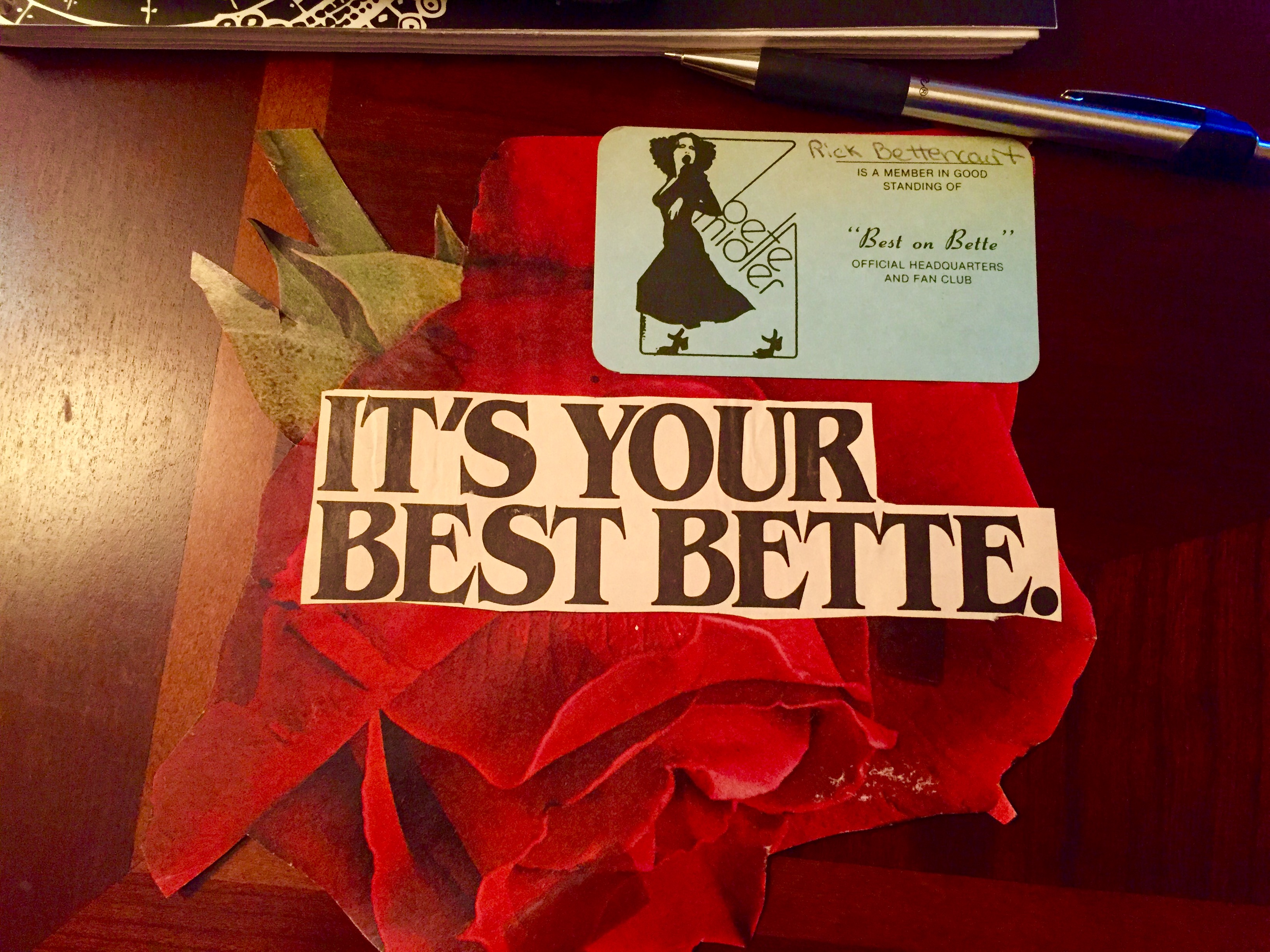The other day, in writing a scene for me from the early eighties, Rick found some of his Midler memorabilia, which mirrored that of my own: An old scrapbook filled with promotional material of Bette Midler from her movie The Rose, pictures from Bette’s concerts, and clippings about the Divine Miss M’s first book A View from a Broad.